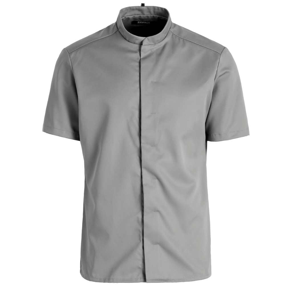 Kochjacke kurzarm Tencel, Kentaur -Innen versteckte Stifttasche in der Knopfleiste -Verdeckte Druckkknöpfe -Lasche aussen am Kragen zum Fixieren des Nackenbandes de Latzschürze -Rückenabnäher -Seitenschlitze 195 g/m2 60° waschbar, Industriewäsche geeignet