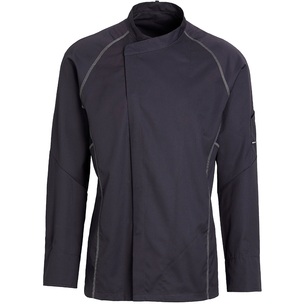 Kochjacke «Sport» unisex langarm, KENTAUR -Lasche für das Nackenband der Latzschürze -Flatlock Nähte -Komfortables dehnbares und atmungsaktives Jersey im Rücken- und Achselbereich -Raglanärmel -Ärmelschnitt der das Anheben der Jacke bei Bewegungen vermeidet -Praktischer Pull-Up Ärmel -Stifttasche am linken Ärmel 175g/m2 60° waschbar, für Industriewäsche geeignet