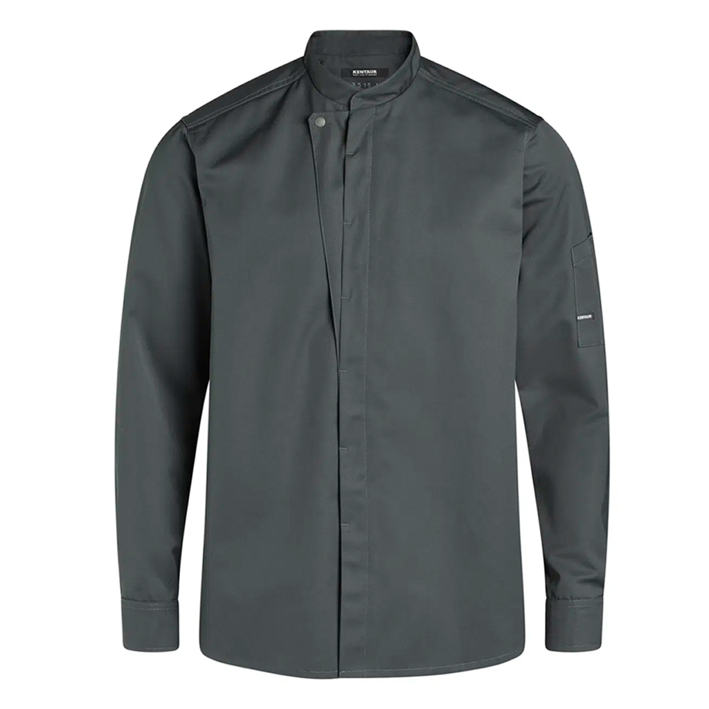 Unisex-Kochjacke leicht langarm, KENTAUR -Verdeckte Druckknöpfe, 1 sichtbarer -Lasche für das Nackenband der Latzschürze -Praktischer Pull-Up Ärmel -Ärmelschnitt der das Anheben der Jacke bei Bewegungen vermeidet -Zweigeteilte Stifttasche am linken Ärmel -Seitenschlitze 180 g/m2 60° waschbar, für Industriewäsche geeignet